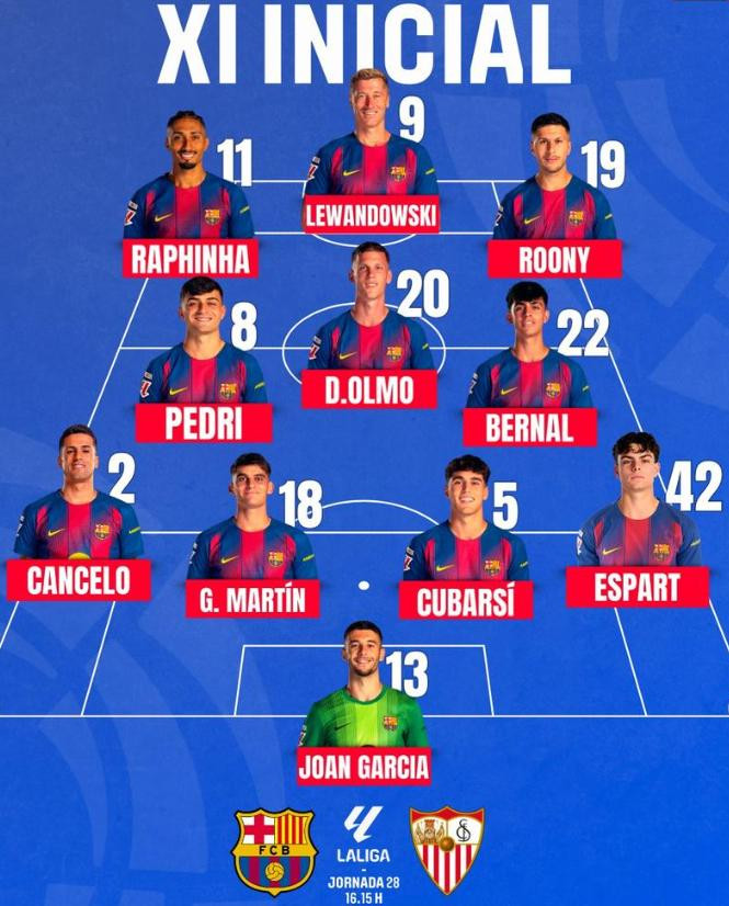 虽然巴萨本赛季进攻数据很好,28场联赛打入77球,几乎是场均3球的数据,但作为中锋出战的莱万和费兰,他俩在联赛中只进了23球,得分效率不如亚马尔和拉菲尼亚这两个边锋。