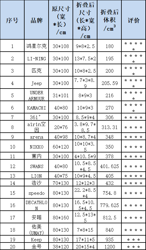 因此,此次比较试验还针对20款样品的便携性和附加功能进行了检测,根据运动毛巾比较试验的便携性测试结果,20款样品在折叠体积与功能设计上存在明显梯度差异。